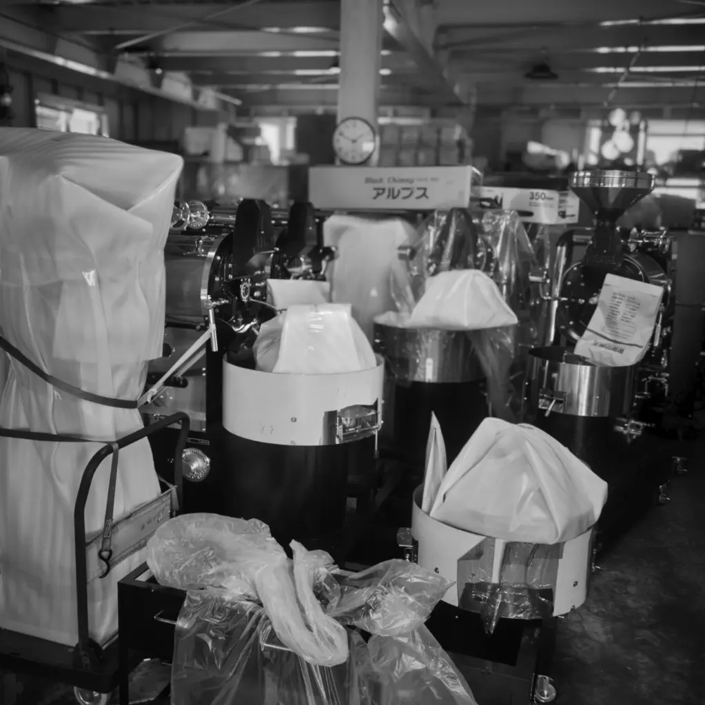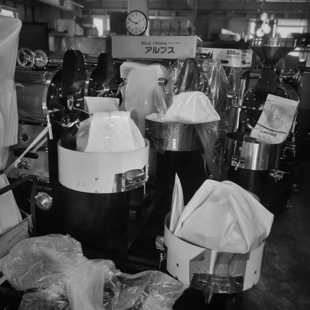完成時に店舗未完成などで配達出来ず。配達待ちで待機中の焙煎機です。